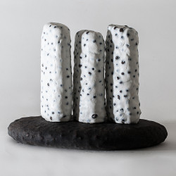 schwarzes elliptoid mit weißen säulen | 2012, 38 x 24 x 33 cm