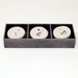 White-brown hemispheres in metal cassette, 3 pieces | 2014, 22,3 x 7,6 x 4,3 cm